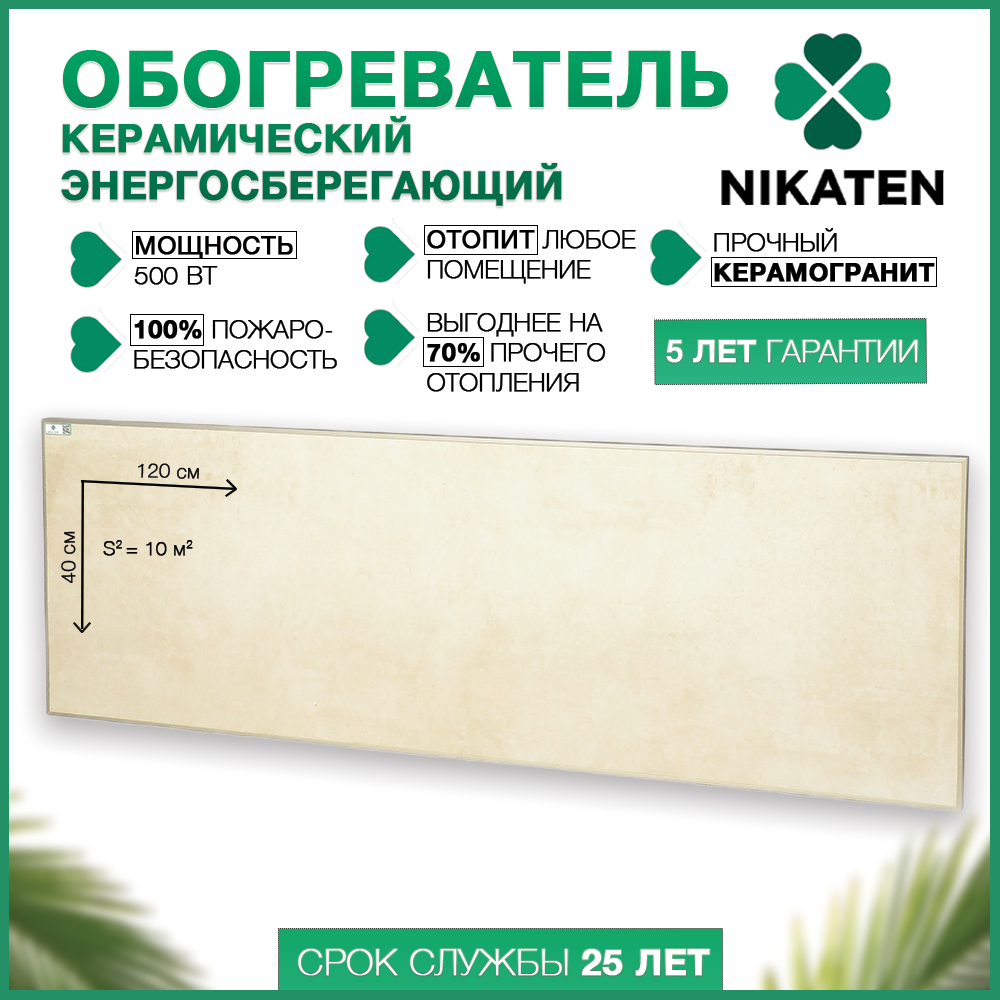 Heater type: infrared-convective, room area: 10 m², power consumption: 0.50 kW, installation: wall-mounted, protection systems: moisture-proof housing, tip-over shutdown, overheating shutdown, pack