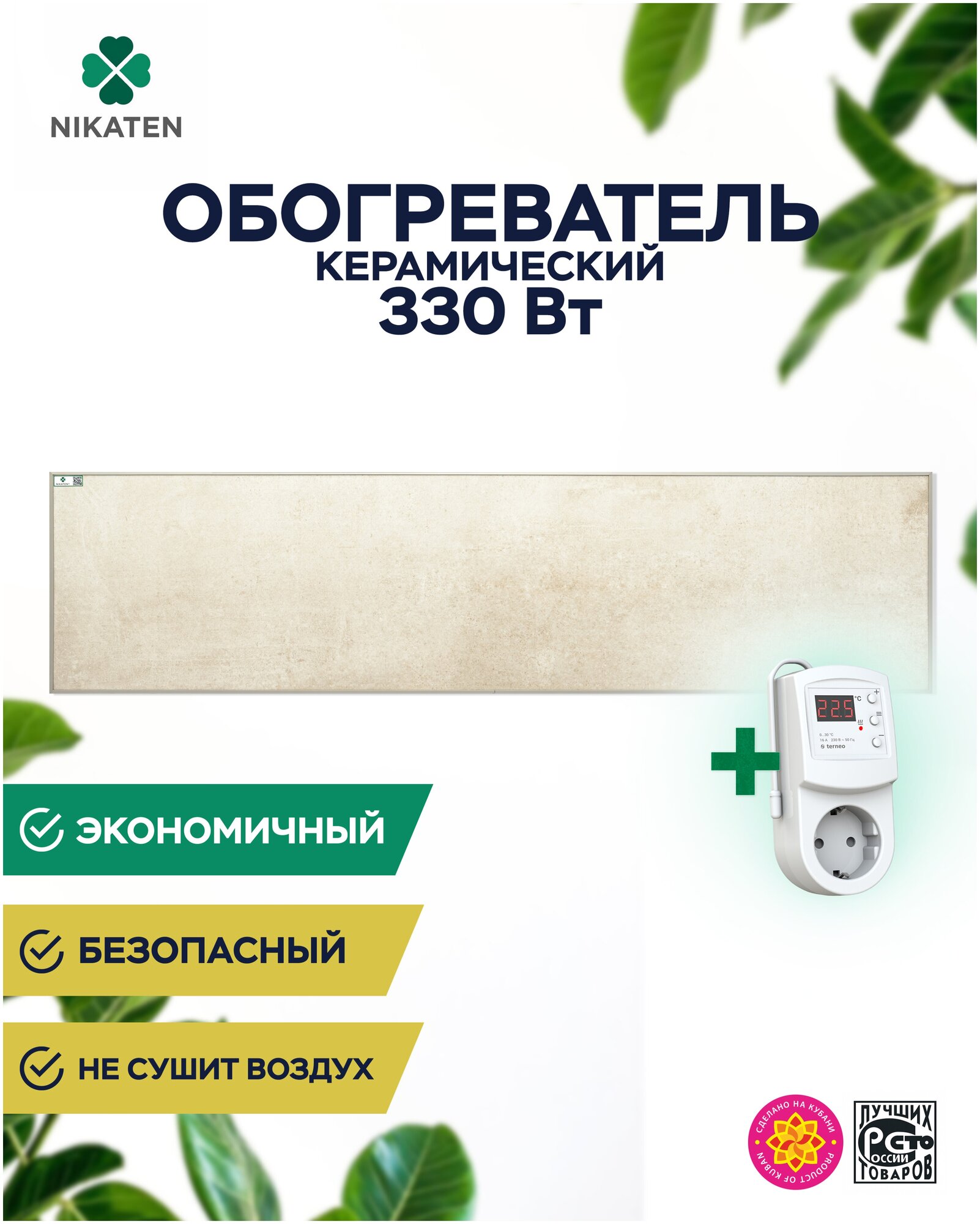 Wall heater 1 pc, mounting kit 1 pc, thermostat Terneo RZ 1 pc.