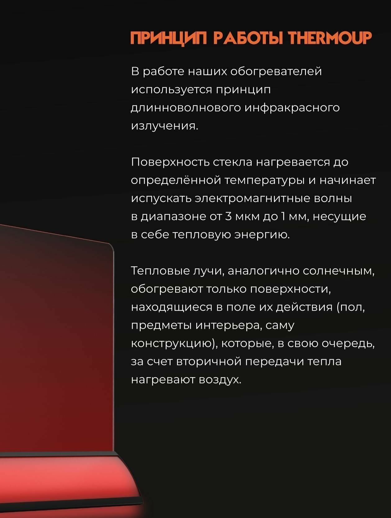 Heater type: infrared, room area: 14 m², installation: floor, protection systems: moisture-proof housing, control: electronic, features: remote control, temperature control, operation without heating, type