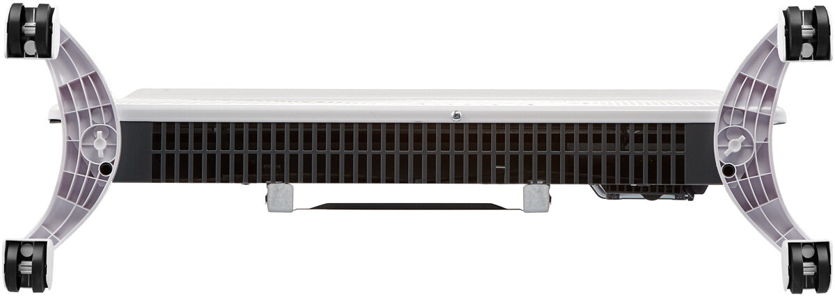 Convective infrared heater, wall mounting bracket, plastic half-turn fasteners, chassis kit with wheels, manual, warranty card in the manual