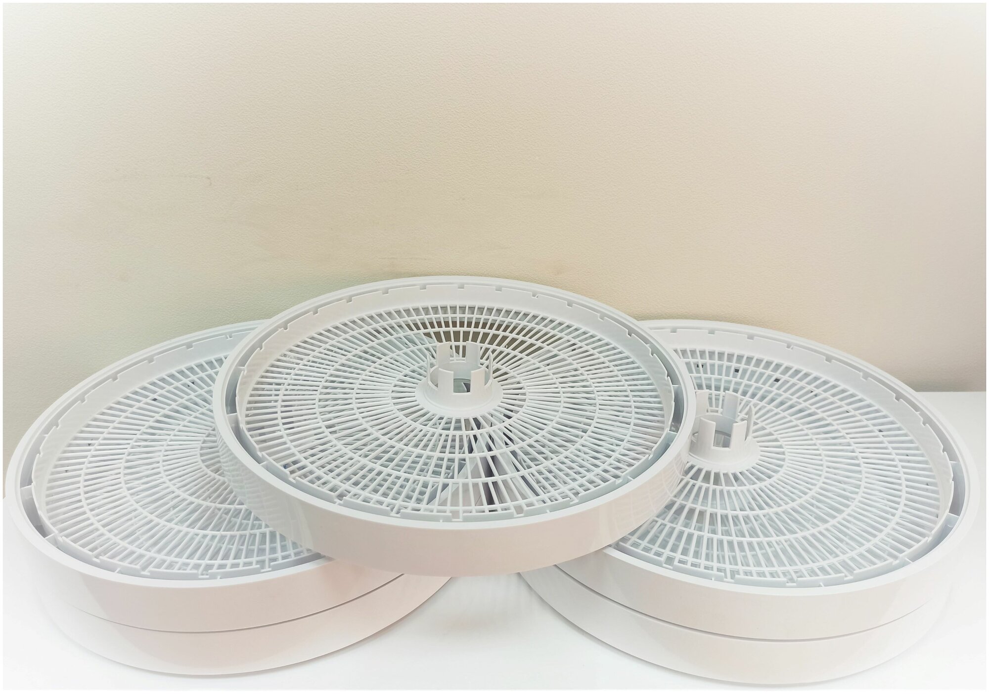 5 pastille trays, 5 mesh trays; Grille and lid made of ABS plastic