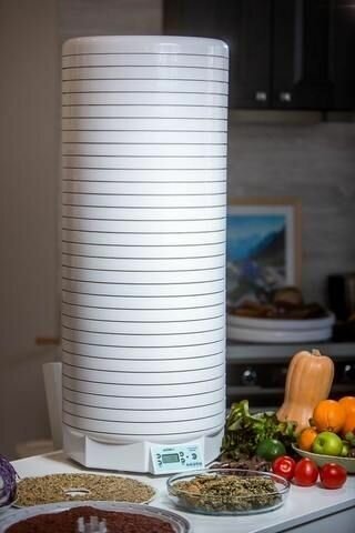 Timer 1h - 48h; the possibility of increasing the volume of drying by purchasing additional pallets up to 30 pallets; base weight: 2.6 kg; the weight of the basic set is not more than 5 kg; base cover: fireproof polycarbonate; reticulate