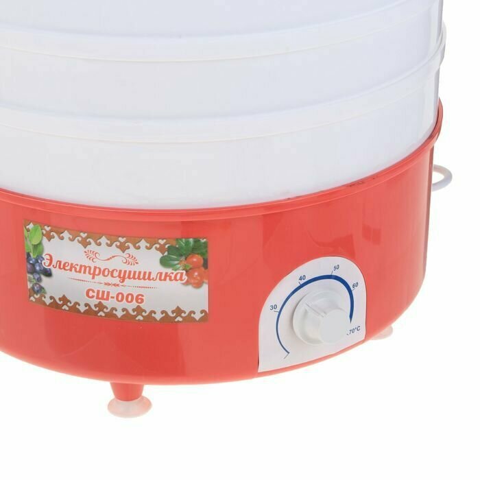 Type: convective, tray material: opaque plastic, number of trays: 5, power: 520 W, drying temperature control, control: mechanical, maximum load: 17 kg