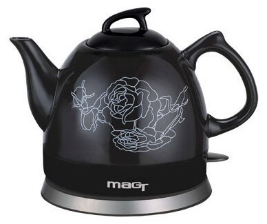 Type: teapot, body material: ceramics, volume: 1 l, type of heating element: closed, features: 360 degree rotation, pattern on the body, removable lid