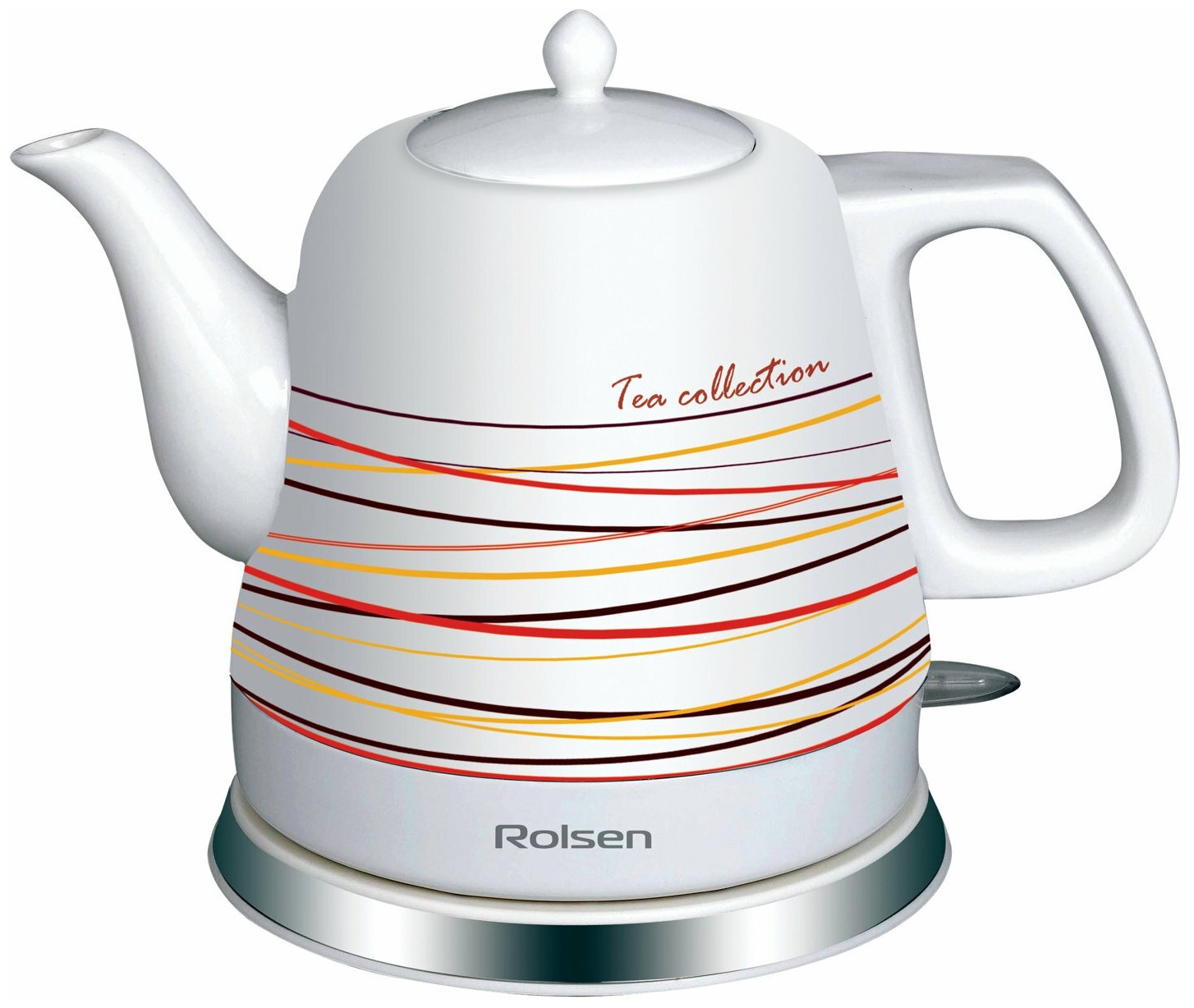 Type: kettle, body material: ceramics, volume: 1.20 l, type of heating element: closed, features: 360 degree rotation, cord storage compartment, pattern on the body, removable lid
