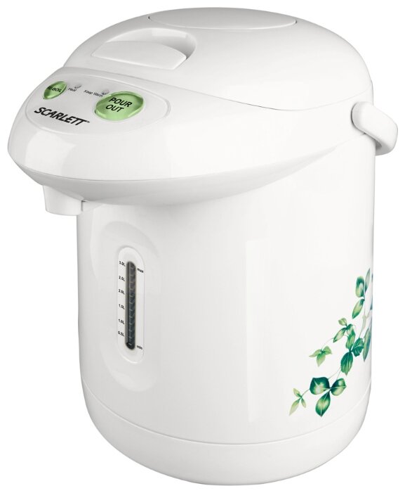 Type: thermopot, body material: plastic, volume: 3 l, type of heating element: closed, additional functions: keeping warm, features: 360 degree rotation, double walls, water level indicator, pattern