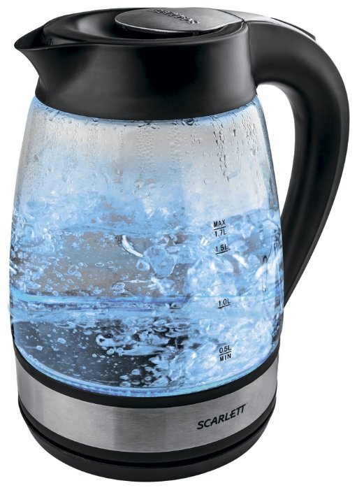 Type: kettle, body material: plastic/glass, volume: 1.70 l, type of heating element: closed, features: 360 degree rotation, water level indicator, cord storage compartment, filter