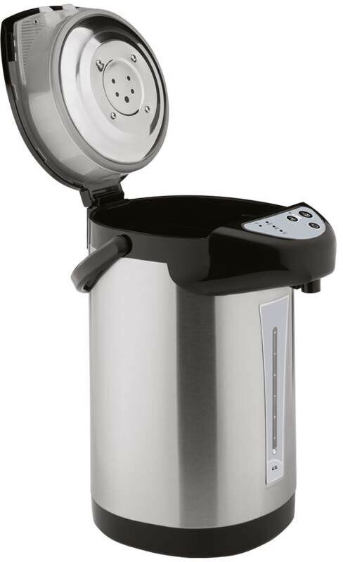 Type: thermopot, case material: metal, volume: 4 l, type of heating element: closed, additional functions: long boiling, features: 360 degree rotation, double walls, water level indicator, removable