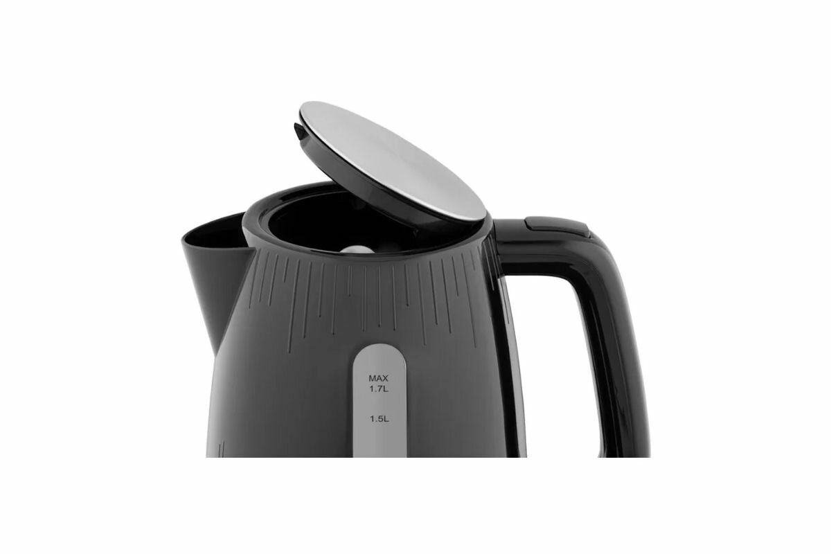 Type: kettle, body material: plastic, volume: 1.70 l, type of heating element: closed, features: 360 degree rotation, water level indicator, cord storage compartment