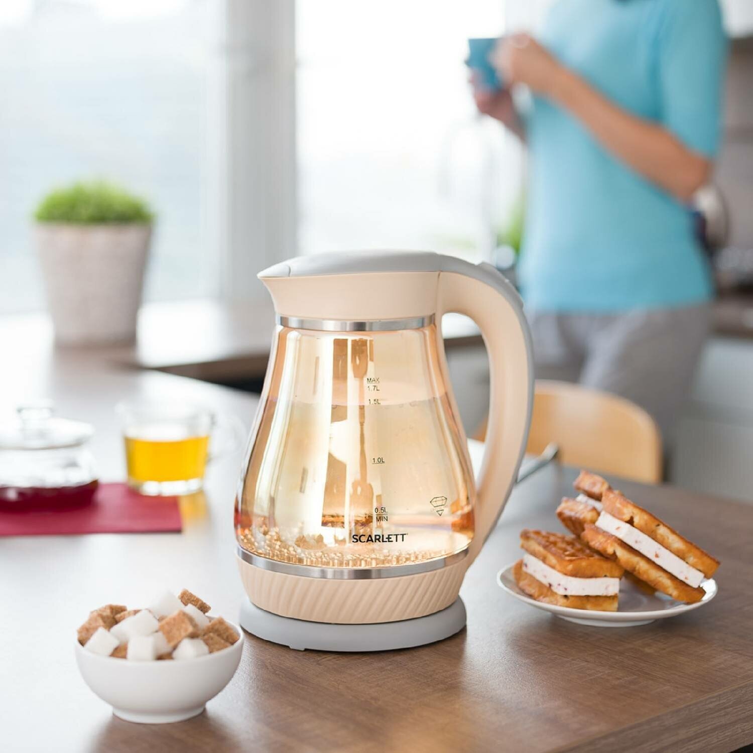 Type: kettle, body material: plastic, volume: 1.70 l, type of heating element: closed, additional functions: keeping warm, features: 360 degree rotation, water level indicator, cord storage compartment