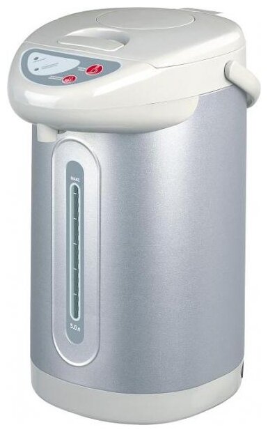 Type: thermopot, case material: metal/plastic, volume: 5 l, type of heating element: closed, additional functions: keeping warm, features: 360 degree rotation, double walls, water level indicator