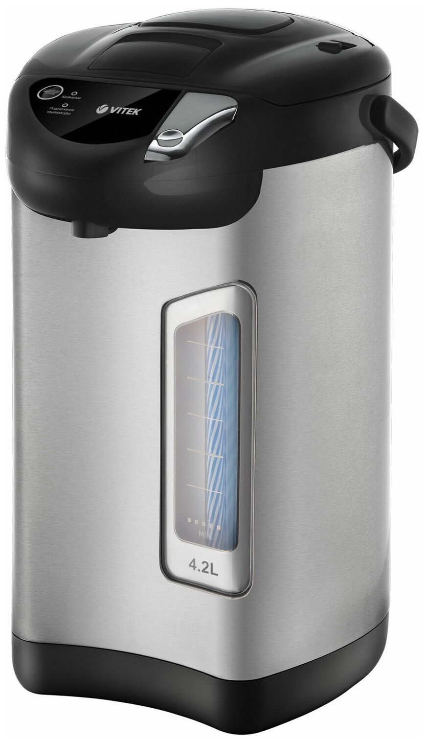 Type: thermopot, body material: metal, volume: 4.20 l, type of heating element: closed, additional functions: keeping warm, features: double walls, water level indicator