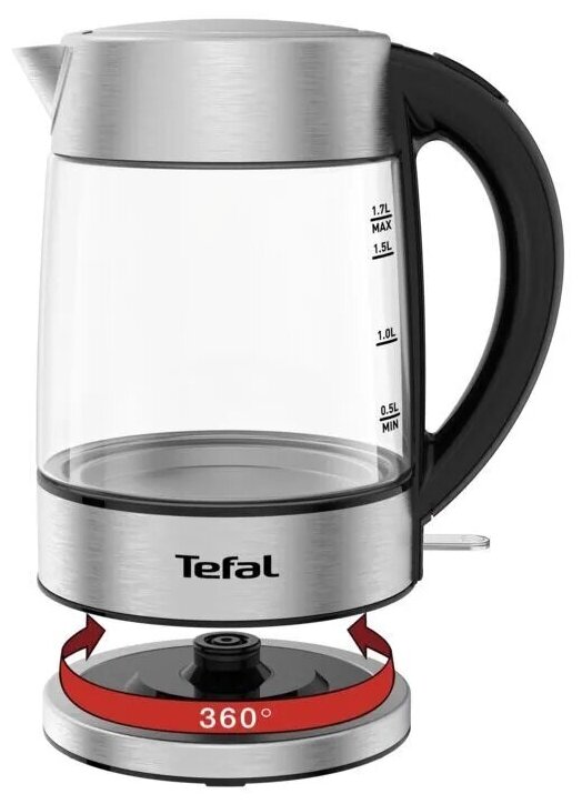 Type: kettle, body material: metal/glass, volume: 1.70 l, type of heating element: closed, features: 360 degree rotation, water level indicator, power on indication, cord storage compartment, filter