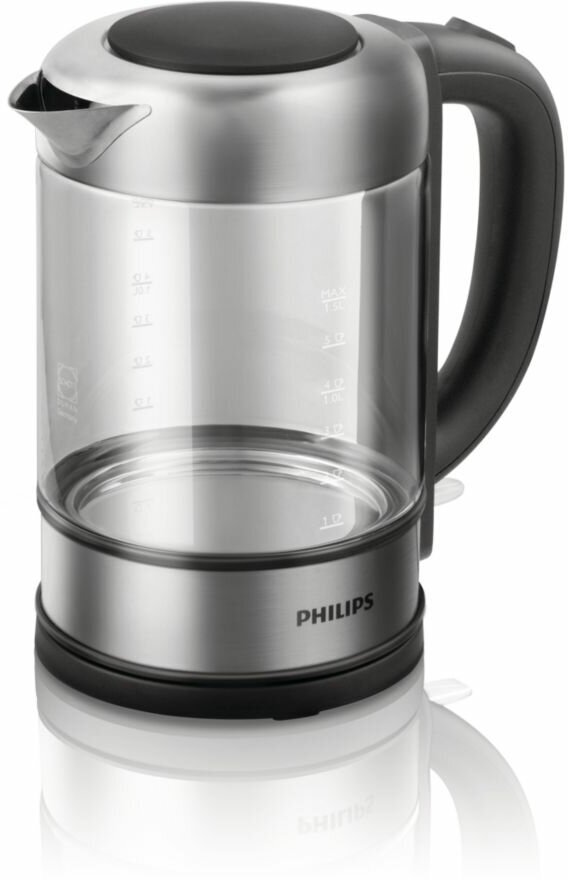 Description: Type: kettle, case material: metal/glass, volume: 1.50 l, type of heating element: closed, additional functions: keeping warm, features: 360 degree rotation, water level indicator, indication on