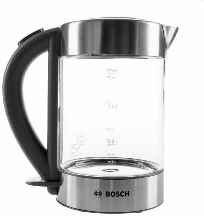 Type: kettle, body material: metal/glass, volume: 1.50 l, type of heating element: closed, features: 360 degree rotation, water level indicator, cord storage compartment, filter, 360° stand rotation