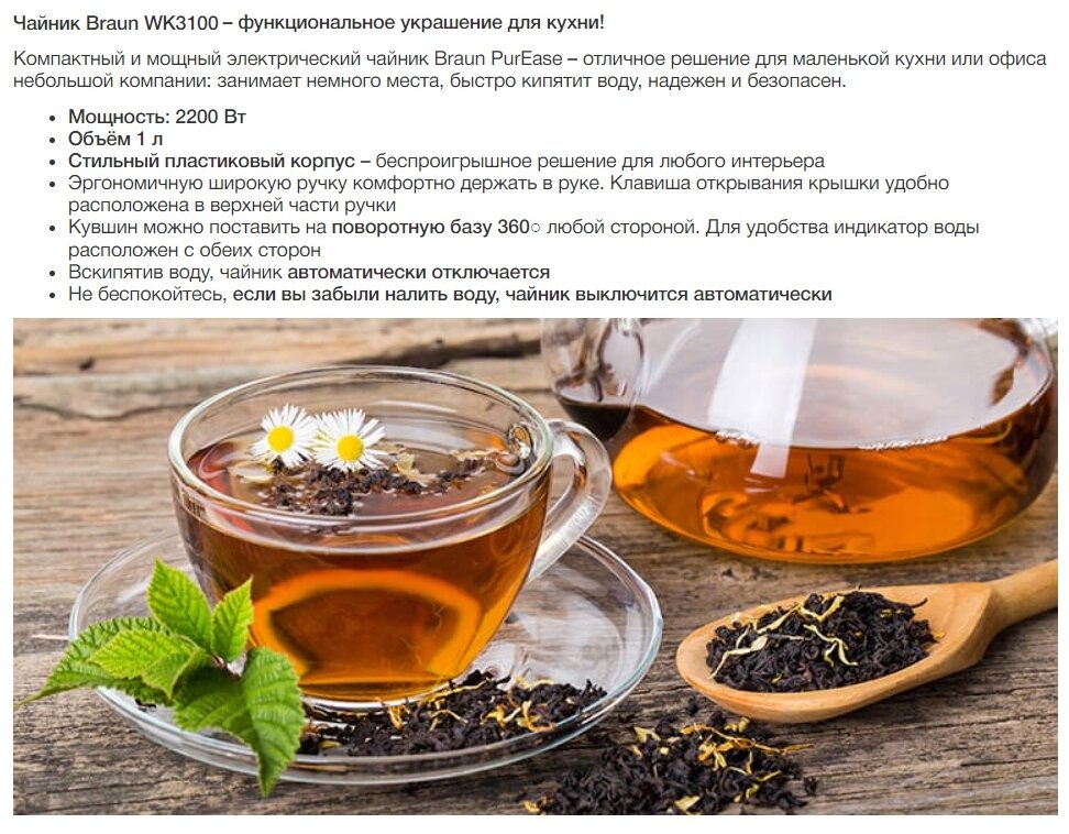 Type: kettle, body material: plastic, volume: 1 l, type of heating element: closed, additional functions: keeping warm, features: 360 degree rotation, water level indicator, cord storage compartment,