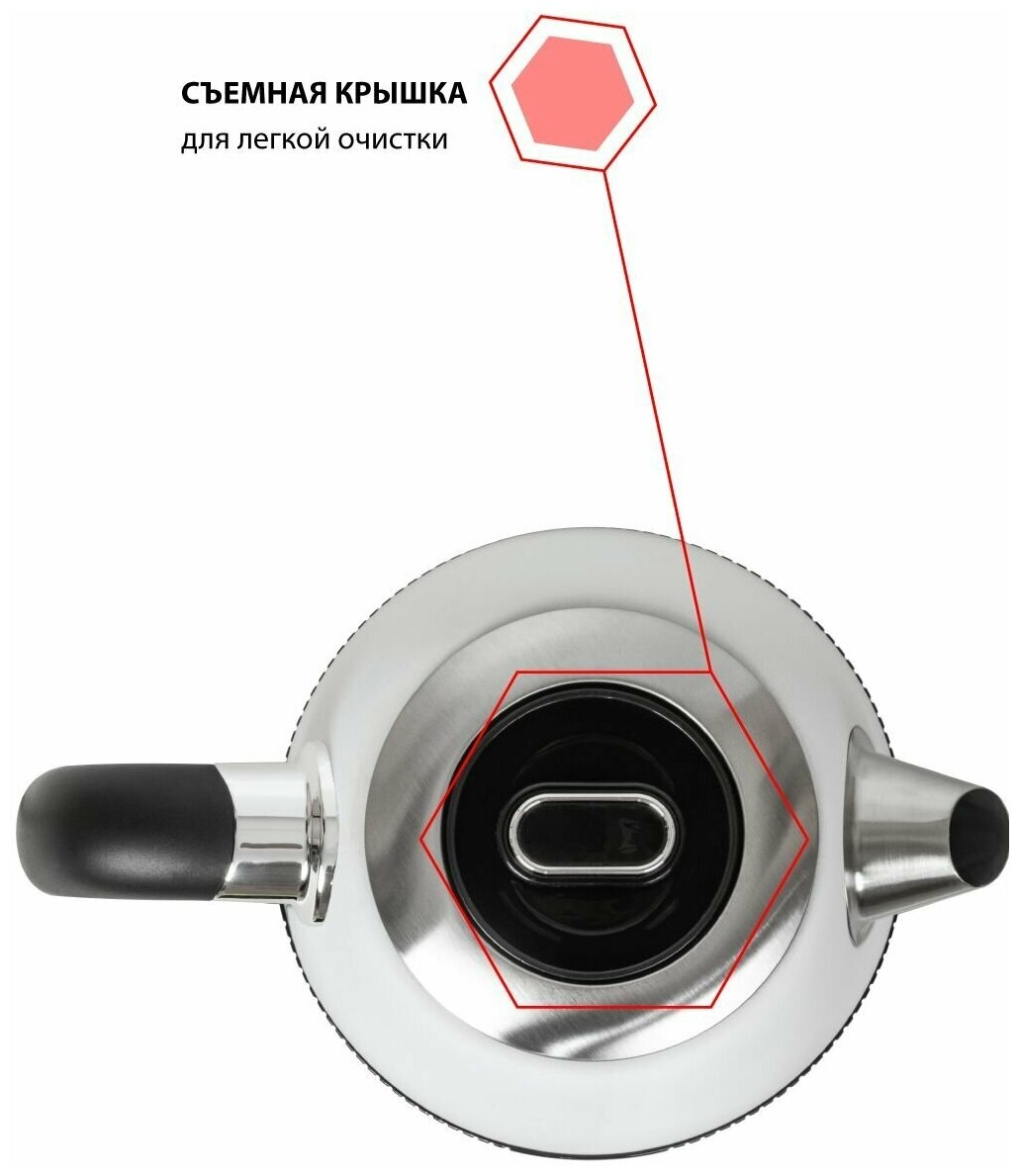 Type: kettle, body material: metal, volume: 1.70 l, type of heating element: closed, features: 360 degree rotation, removable lid, filter