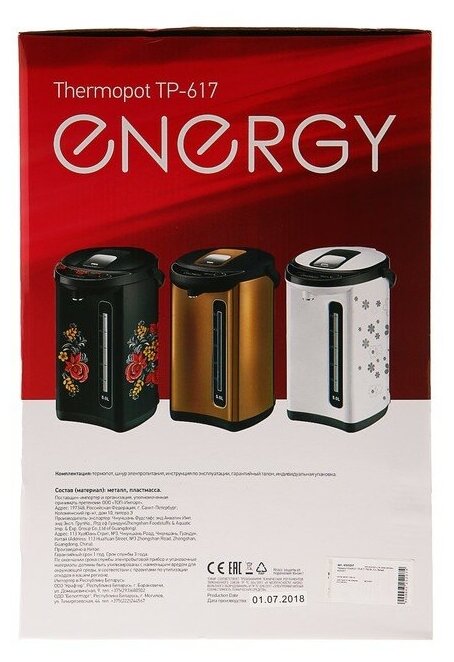 Type: thermopot, case material: plastic, volume: 5 l, features: drawing on the case