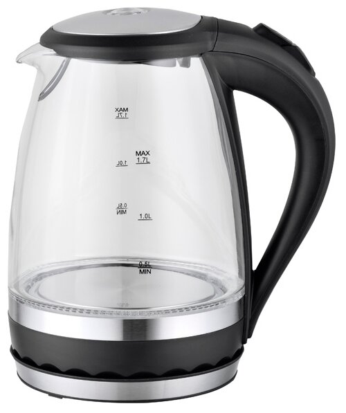 Type: kettle, body material: plastic/glass, volume: 1.70 l, type of heating element: closed, features: 360 degree rotation, water level indicator, filter