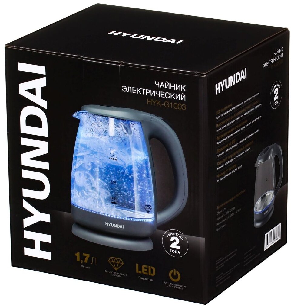 Description: Type: kettle, body material: plastic/glass, volume: 1.70 l, type of heating element: closed, features: 360 degree rotation, water level indicator, power on indication, filter