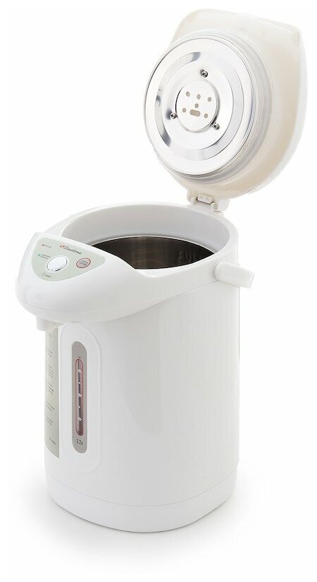 Type: thermopot, body material: plastic, volume: 3.20 l, type of heating element: closed, additional functions: heating function, re-boiling, features: water level indicator, on indication, off
