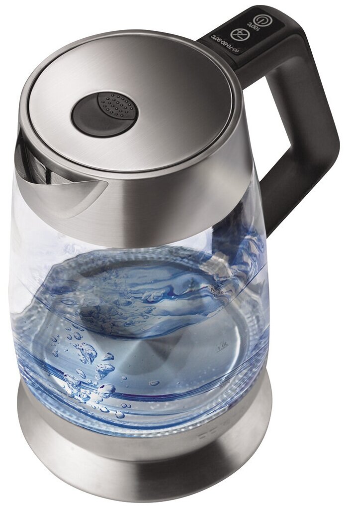 Type: kettle, body material: metal/glass, volume: 1.70 l, type of heating element: closed, features: 360 degree rotation, water level indicator, cord storage compartment, filter