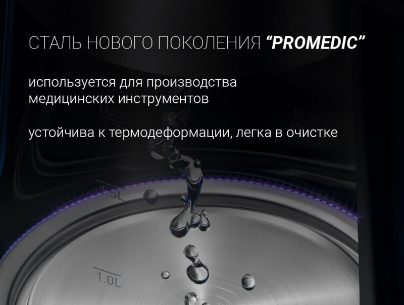 Waterless switch-on lock, switch-off when removed from the stand, overload protection, waterless switch-on lock