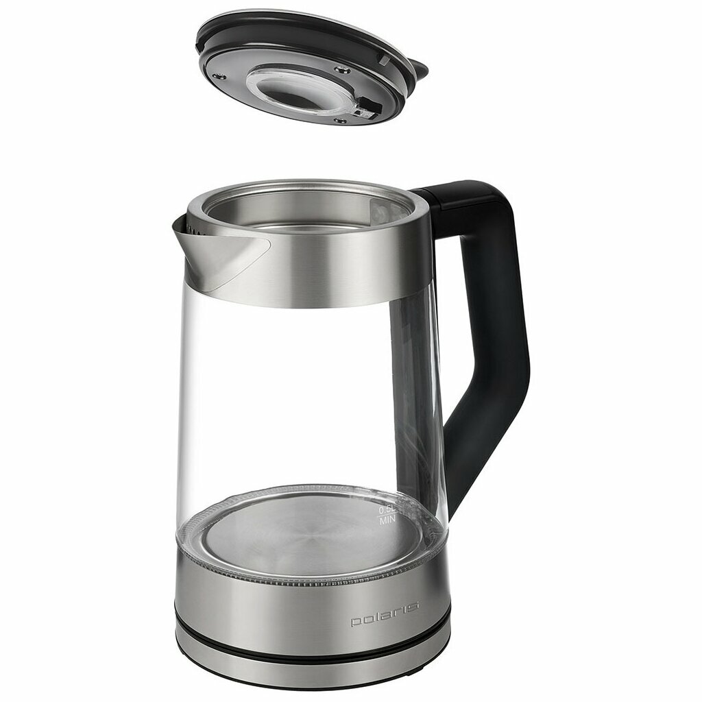 Type: kettle, body material: metal/glass, volume: 1.70 l, type of heating element: closed, features: 360 degree rotation, water level indicator, power on indication, cord storage compartment, removable lid