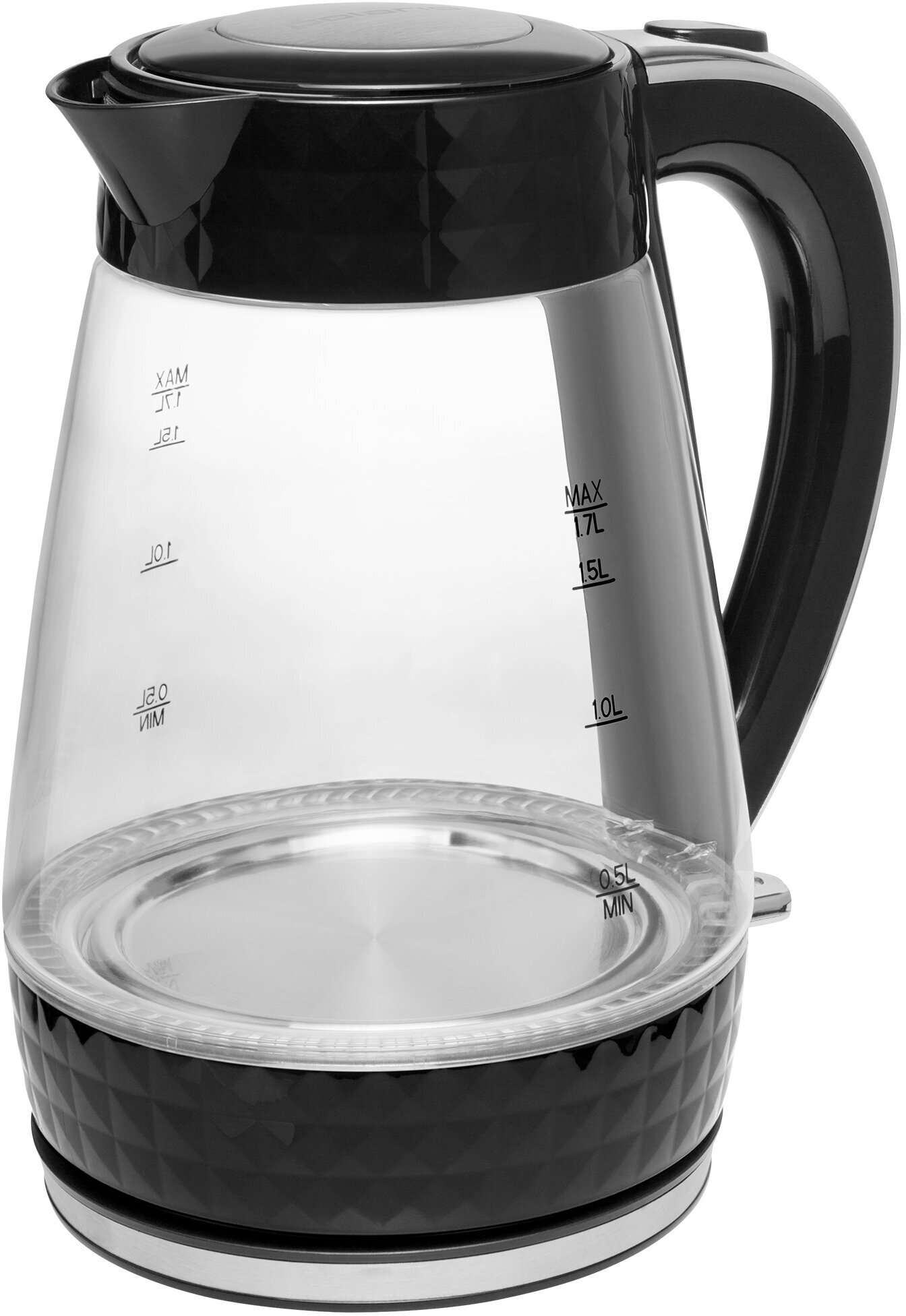 Type: kettle, body material: plastic/glass, volume: 1.70 l, heating element type: closed, features: 360 degree rotation, cord storage compartment, filter