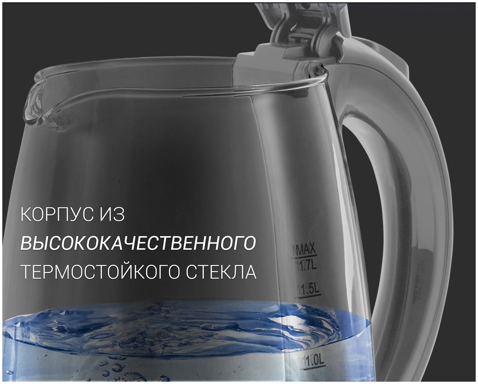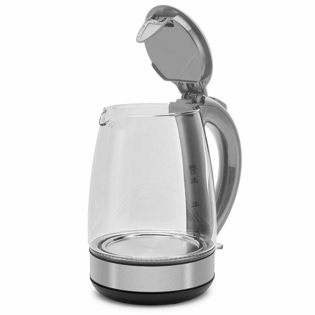 Type: kettle, body material: metal/glass, volume: 1.70 l, type of heating element: closed, features: 360 degree rotation, water level indicator, cord storage compartment, filter