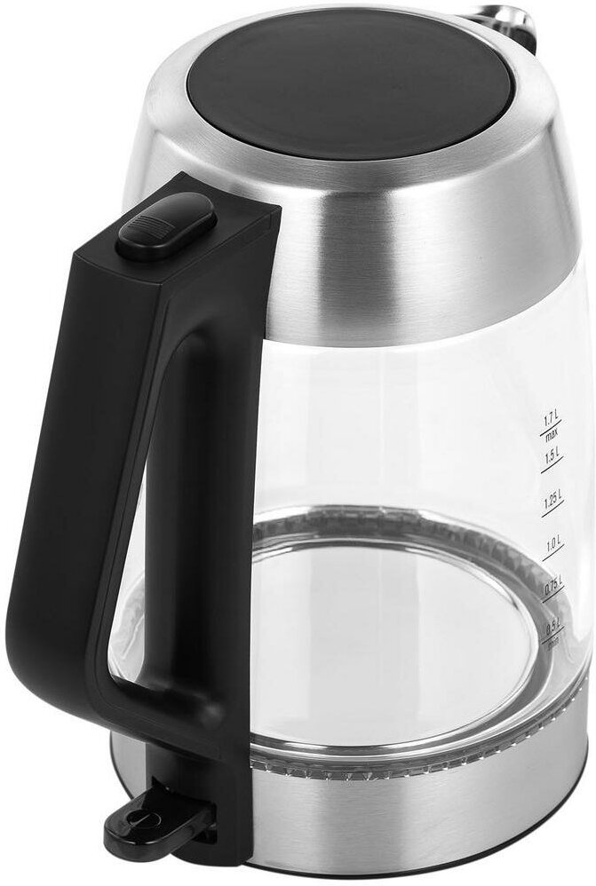 Type: kettle, body material: metal/glass, volume: 1.70 l, type of heating element: closed, features: 360 degree rotation, water level indicator, cord storage compartment, filter, 360° stand rotation