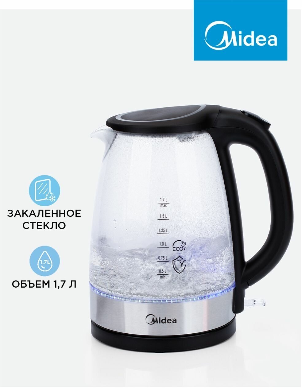 Type: kettle, body material: plastic/glass, volume: 1.70 l, heating element type: closed, features: 360 degree rotation, water level indicator