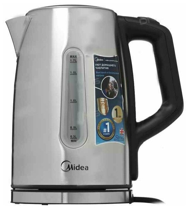 Type: teapot, case material: metal, volume: 1.70 l, type of heating element: closed, features: water level indicator, on indication, filter