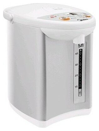 Type: thermopot, case material: metal/plastic, volume: 5 l, type of heating element: closed, additional functions: keeping warm, features: double walls, water level indicator, power on indication