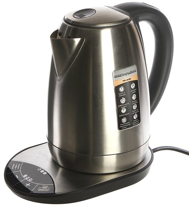 Type: kettle, case material: metal, volume: 1.70 l, type of heating element: closed, additional functions: keeping warm, features: 360 degree rotation, water level indicator, cord storage compartment,