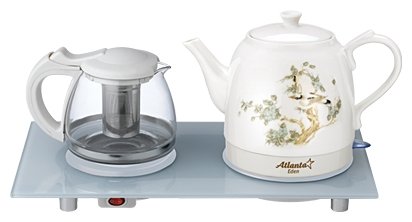 Type: teapot, body material: ceramics, volume: 1.20 l, teapot, features: teapot, cord storage compartment, pattern on the body, removable lid