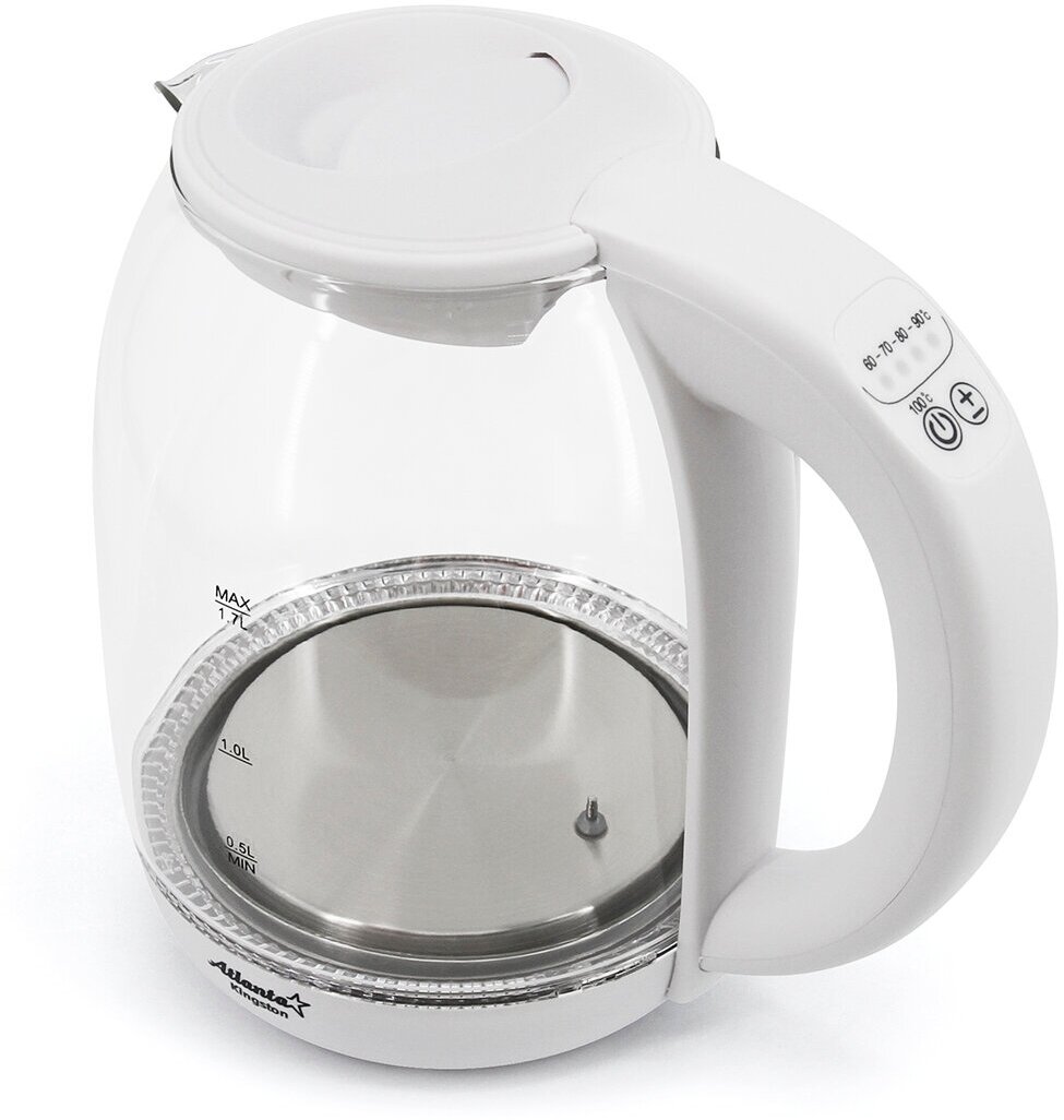 Type: kettle, body material: plastic, volume: 1.70 l, type of heating element: closed, additional functions: keeping warm, features: 360 degree rotation, water level indicator, cord storage compartment
