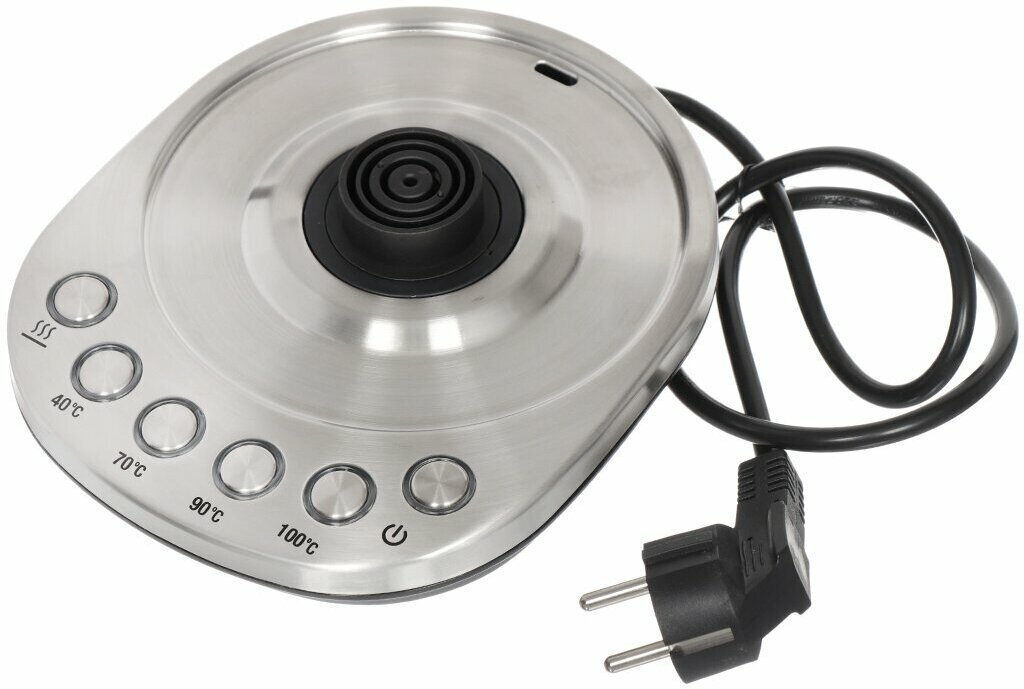 Description: Type: kettle, case material: metal/glass, volume: 1.50 l, type of heating element: closed, additional functions: keeping warm, features: 360 degree rotation, water level indicator, filter