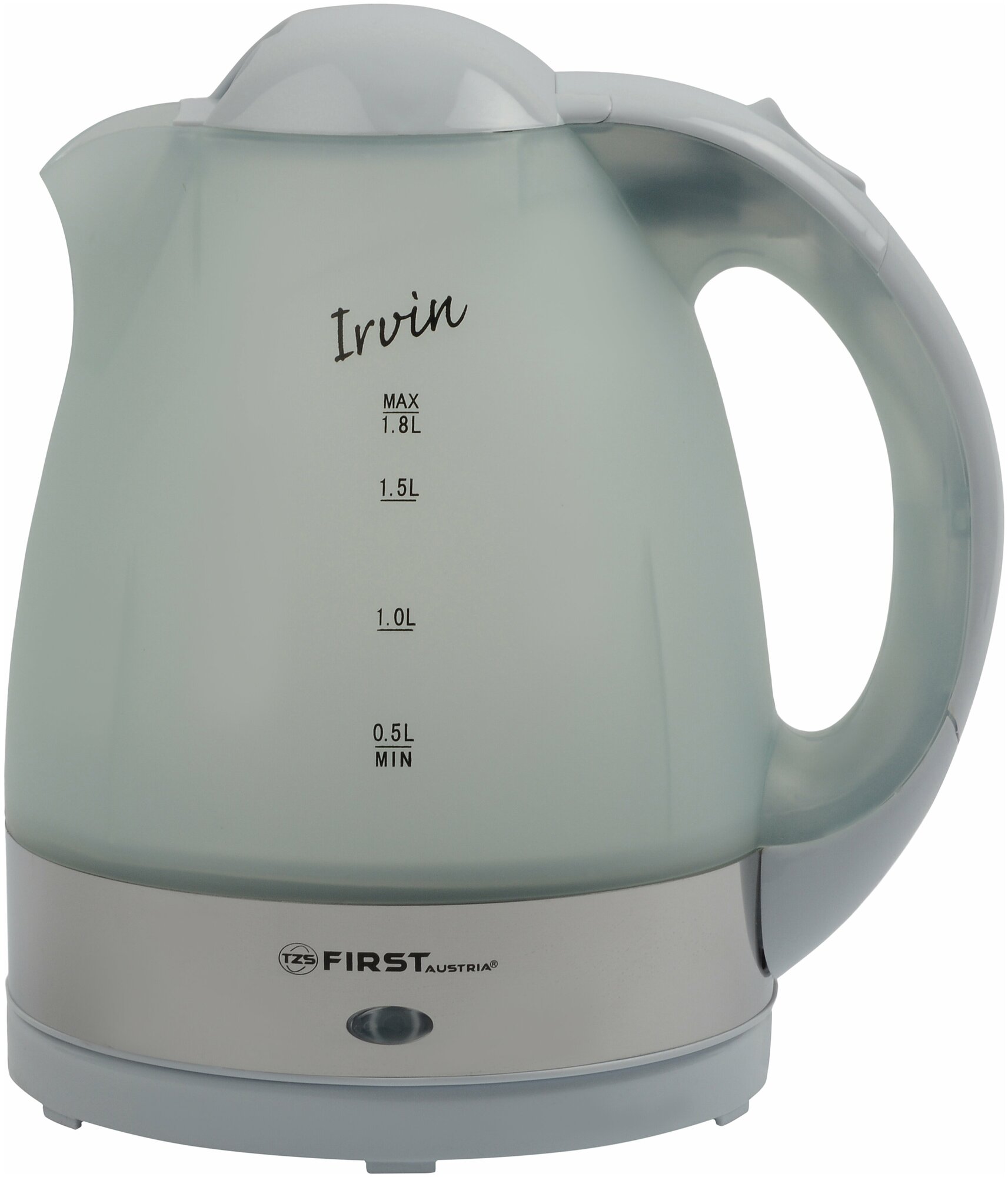Type: kettle, body material: plastic, volume: 1.80 l, type of heating element: closed, additional functions: keeping warm, features: 360 degree rotation, water level indicator, filter