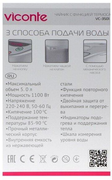 Thermopot VICONTE VC-3501 5 l, 1100 W, white/metal