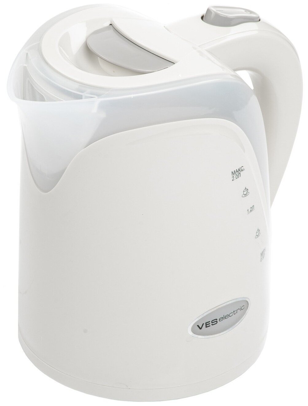 Type: kettle, body material: plastic, volume: 2 l, type of heating element: closed, features: 360 degree rotation, water level indicator, cord storage compartment, filter