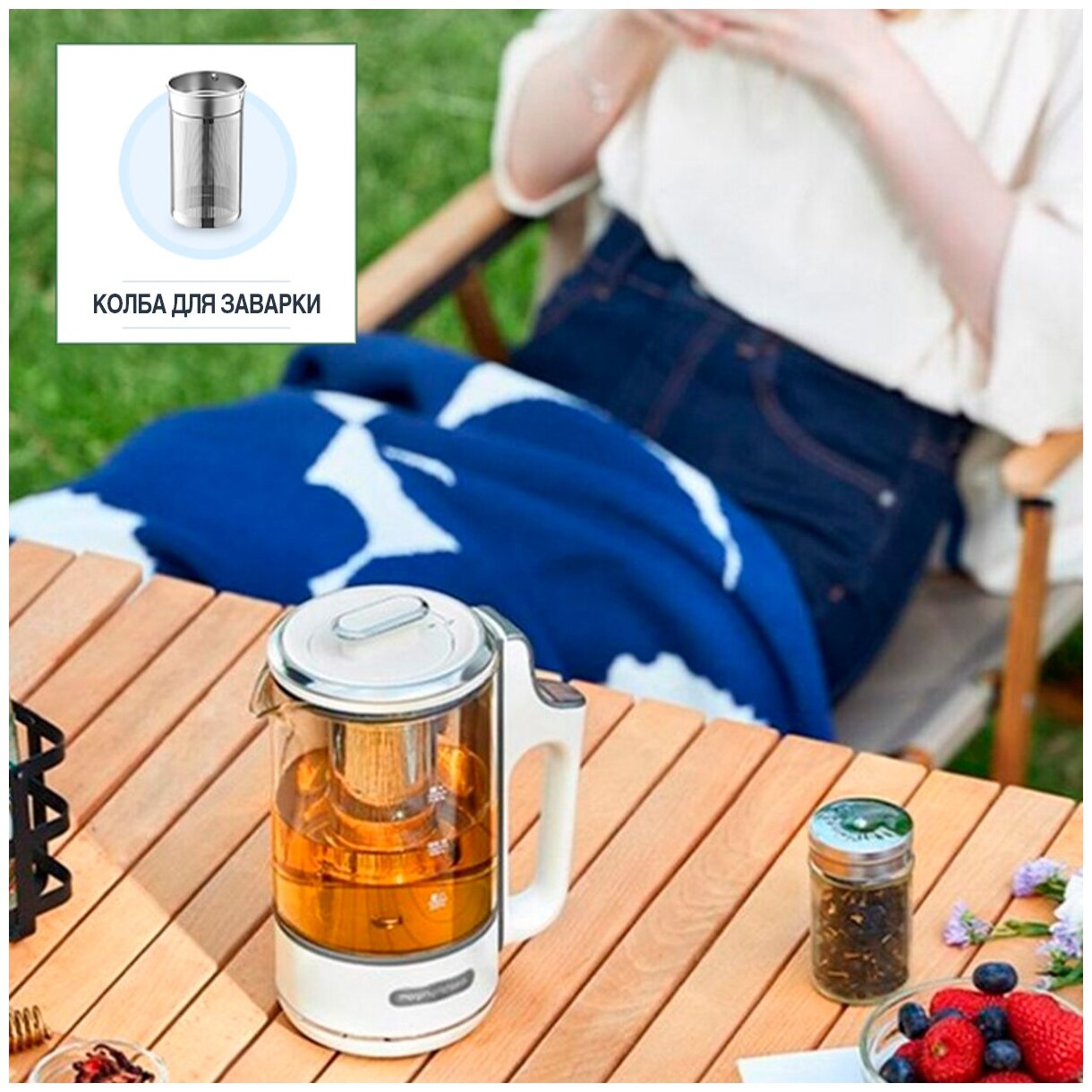 Brewing filter, teapot, switch-on indication, touch control, removable lid, filter