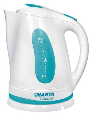 Type: kettle, body material: plastic, volume: 1.80 l, type of heating element: closed, features: 360 degree rotation, water level indicator, cord storage compartment, filter
