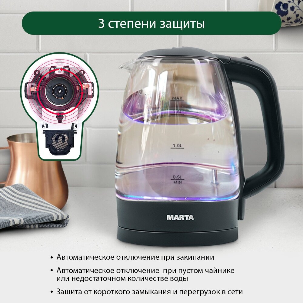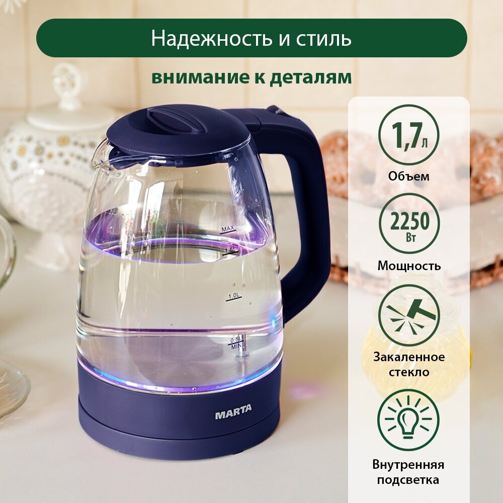 Type: kettle, body material: plastic, volume: 1.70 l, type of heating element: closed, additional functions: keeping warm, features: 360 degree rotation, water level indicator, cord storage compartment