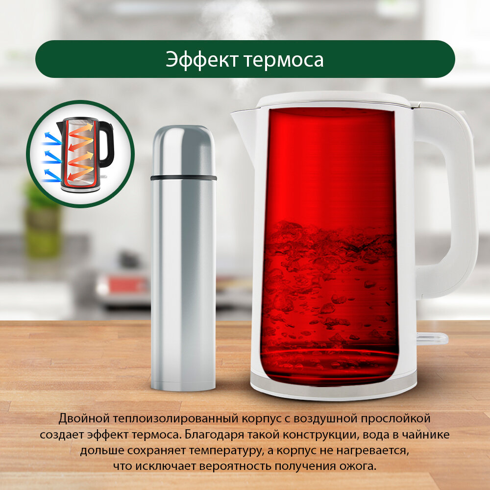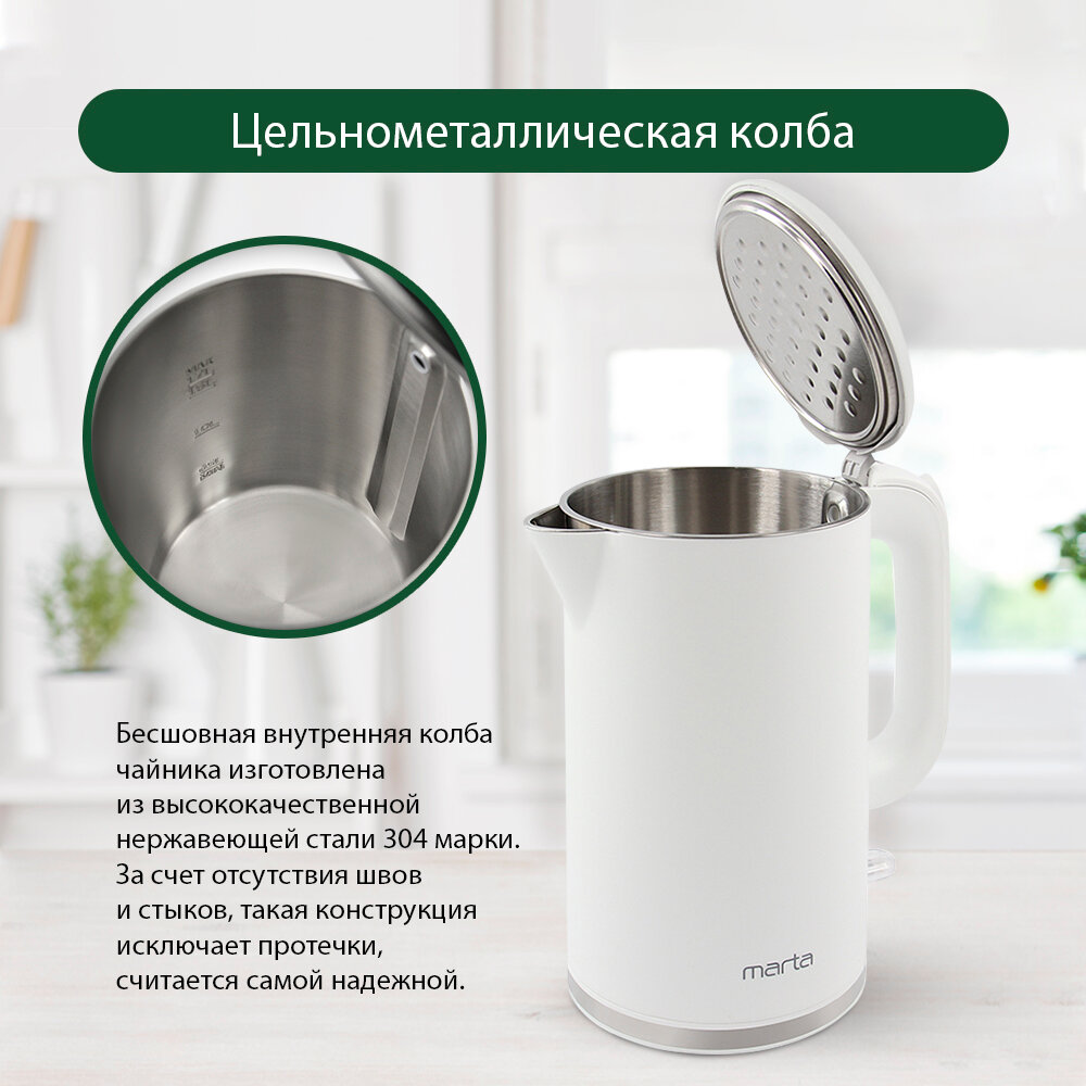 Type: kettle, body material: metal/plastic, volume: 1.70 l, type of heating element: closed, features: 360 degree rotation, double walls, on indication, cord storage compartment