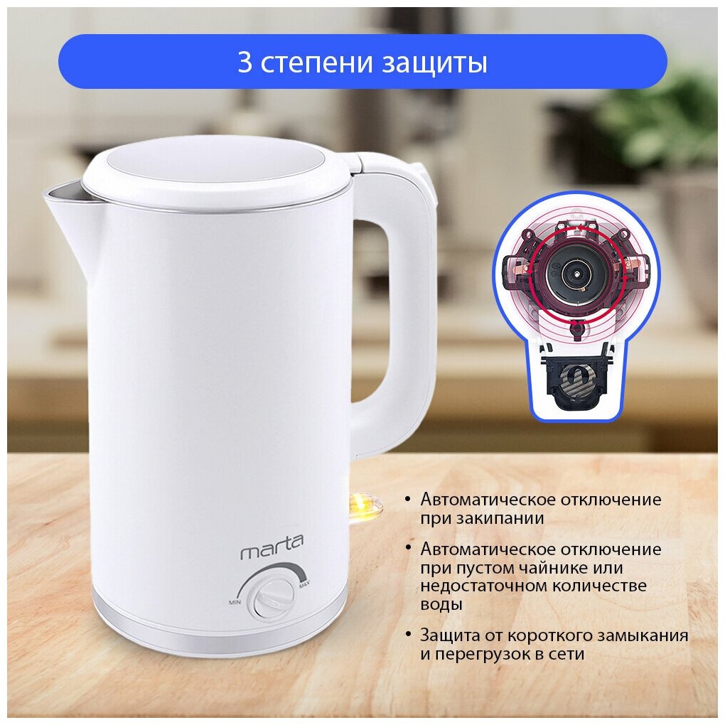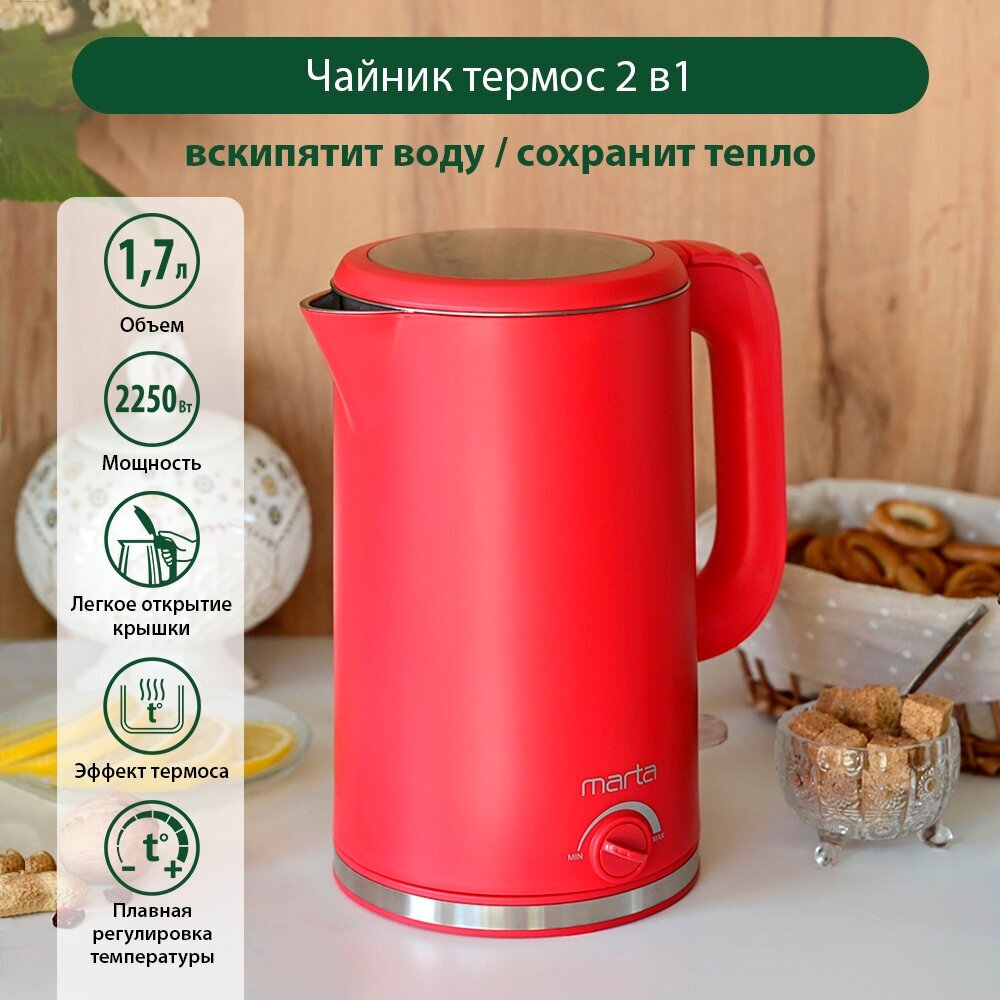 Type: kettle, body material: metal/plastic, volume: 1.70 l, type of heating element: closed, additional functions: keeping warm, features: 360 degree rotation, double walls