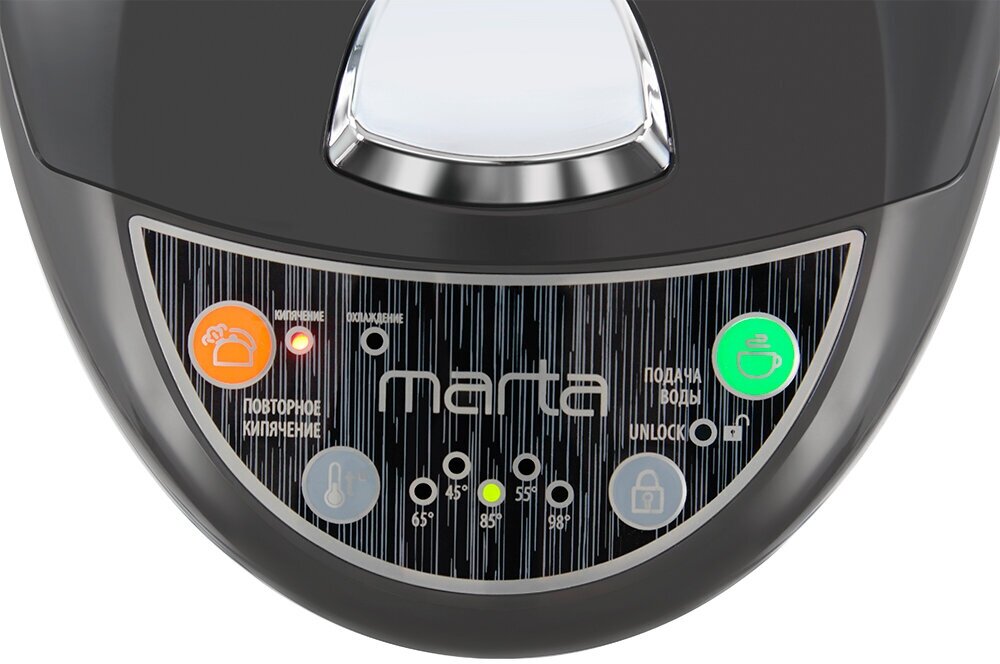 Double walls, water level indicator, on indication, water heating temperature selection, timer