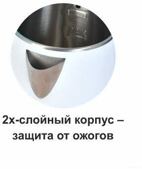 Type: kettle, body material: metal/plastic, volume: 1.80 l, type of heating element: closed, features: 360 degree rotation, double walls, on indication, cord storage compartment, filter