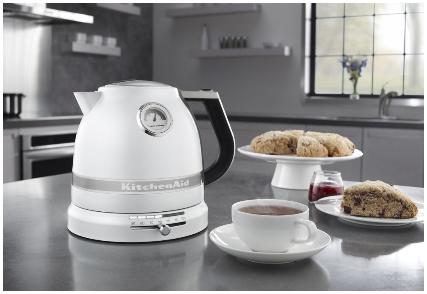 Type: kettle, case material: metal, volume: 1.50 l, type of heating element: closed, additional functions: and after 95 - 5 degrees, white or herbal tea; informative display, the ability to select the temperature from