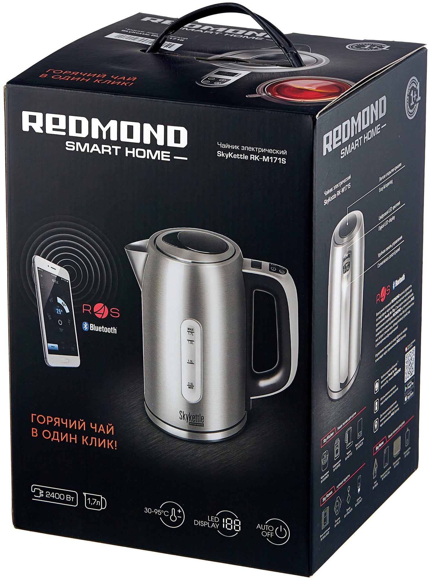 Ability to control from a smartphone minimum version: Android 4.3, iOS 8; temperature maintenance up to 12 hours; function of heating water without boiling; filter material: nylon